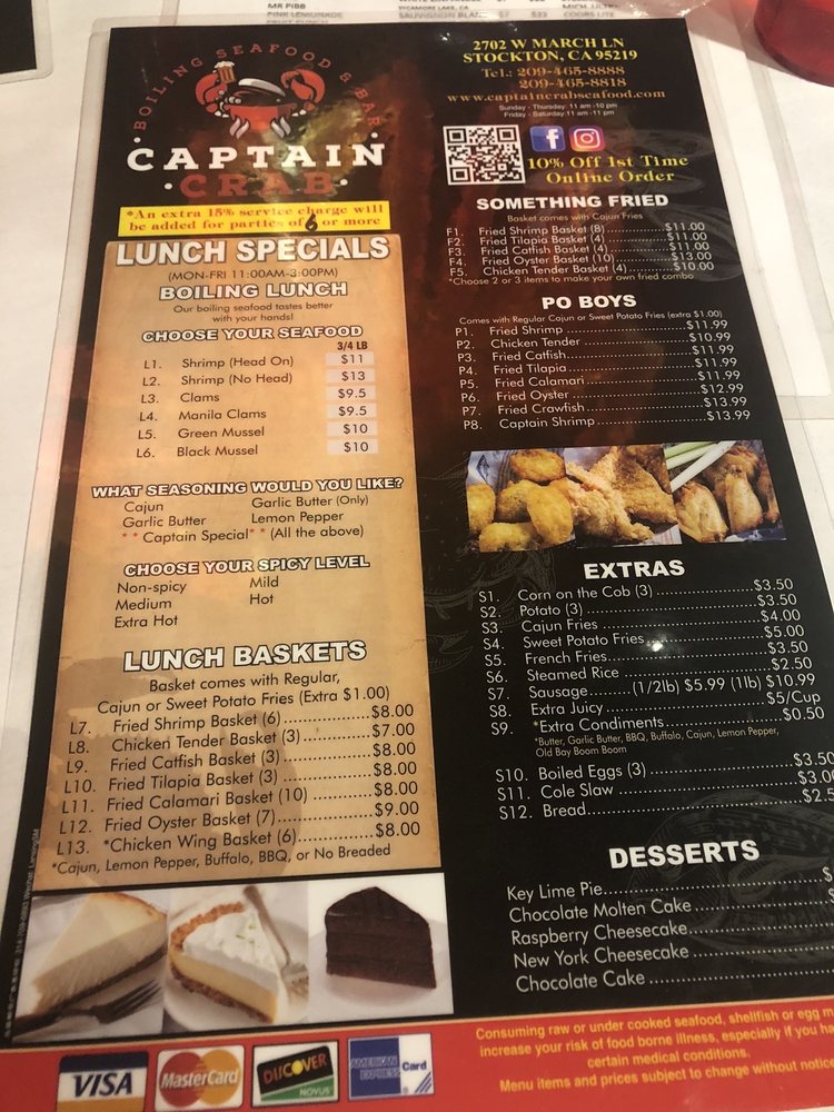 Captain Crab Seafood Restaurant - Stockton Menu